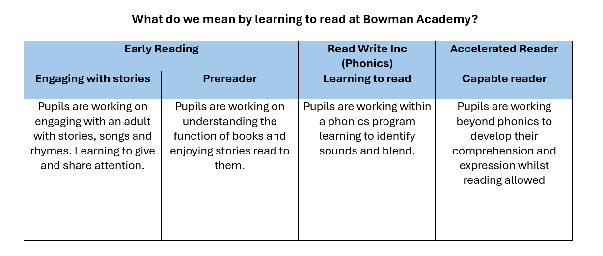 Bowman Academy identifies two important phases in reading development: